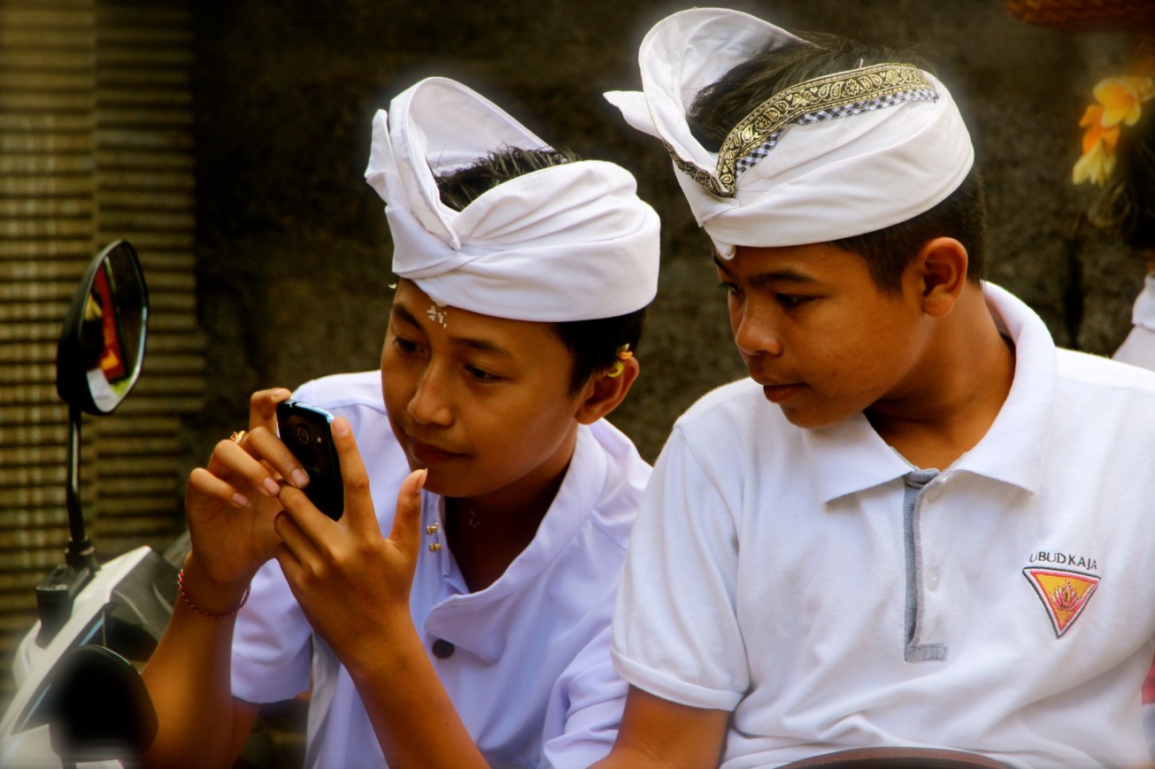 The two boys with the cell phone…their concentration …you really got a great shot there!