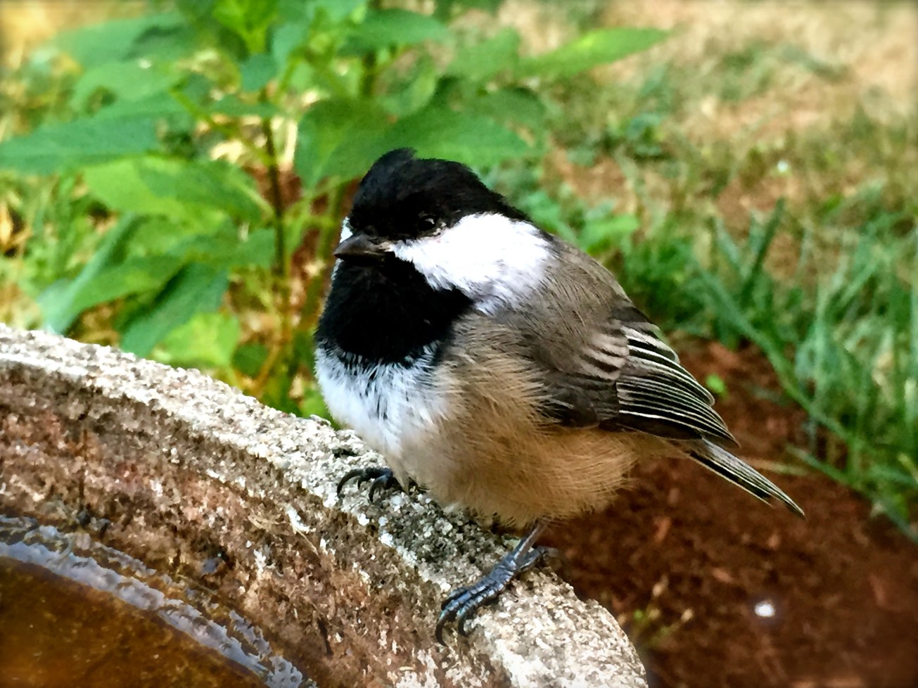 Last night, I noticed this tiny chickadee sitting on the edge of the birdbath. I grabbed my phone, set the camera and slooooowly walked towards it. The chickadee did not appear to be afraid of me. It was incredible to be so close for several minutes. After I turned off the camera, my feathery friend took flight and disappeared into the forest behind us.