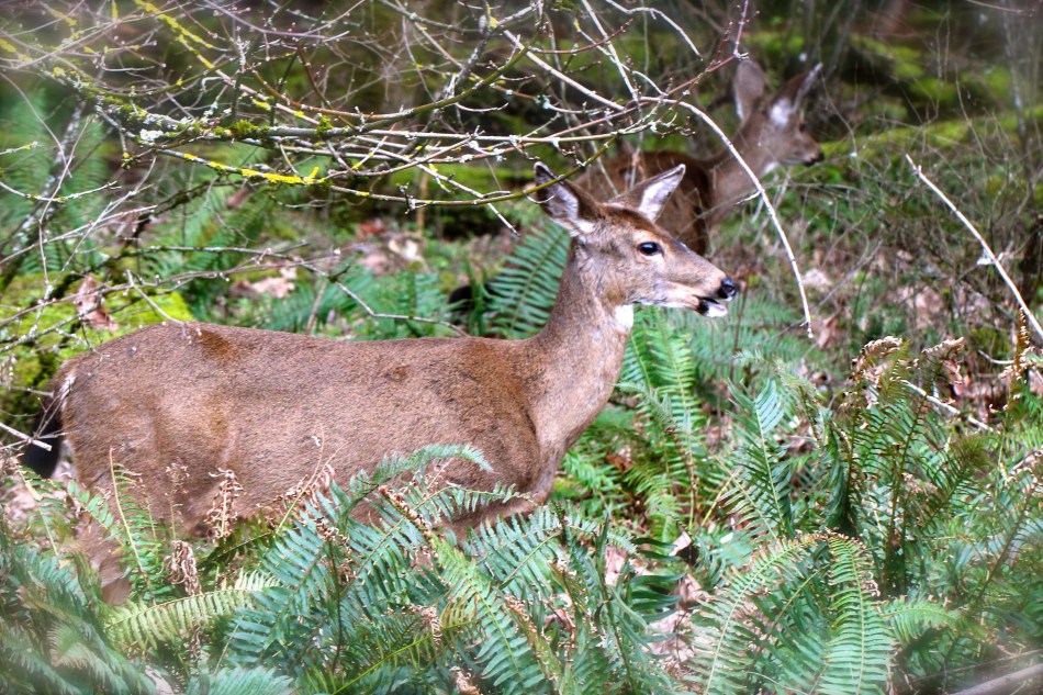 Over the years, the local deer population seems to have declined. We see far fewer than in the past. Blacktail deer live all along the west coast, from California to Alaska in old-growth, dense forests and even green spaces in the suburbs.