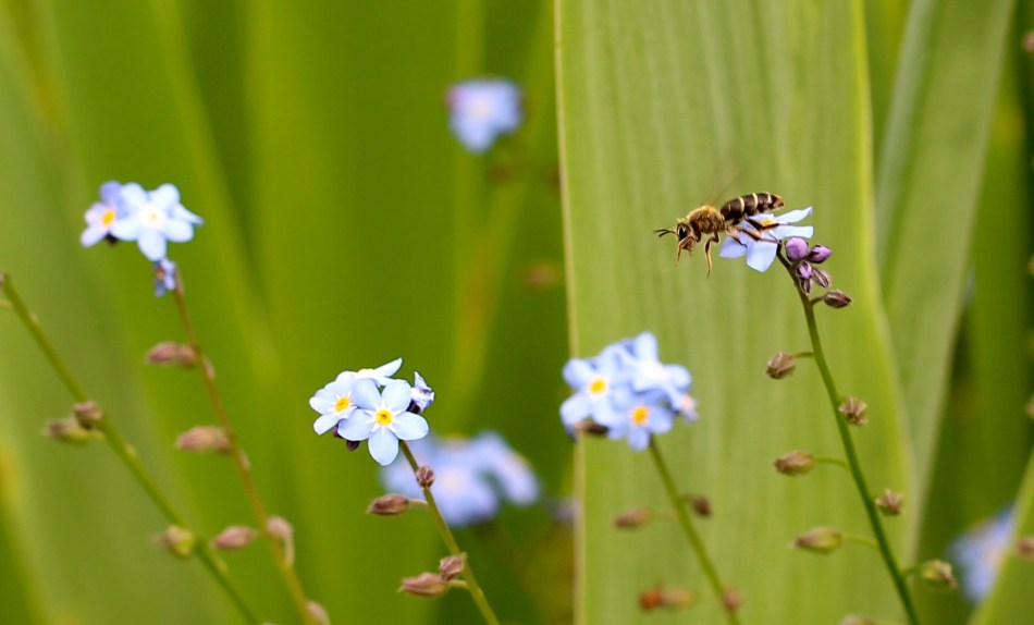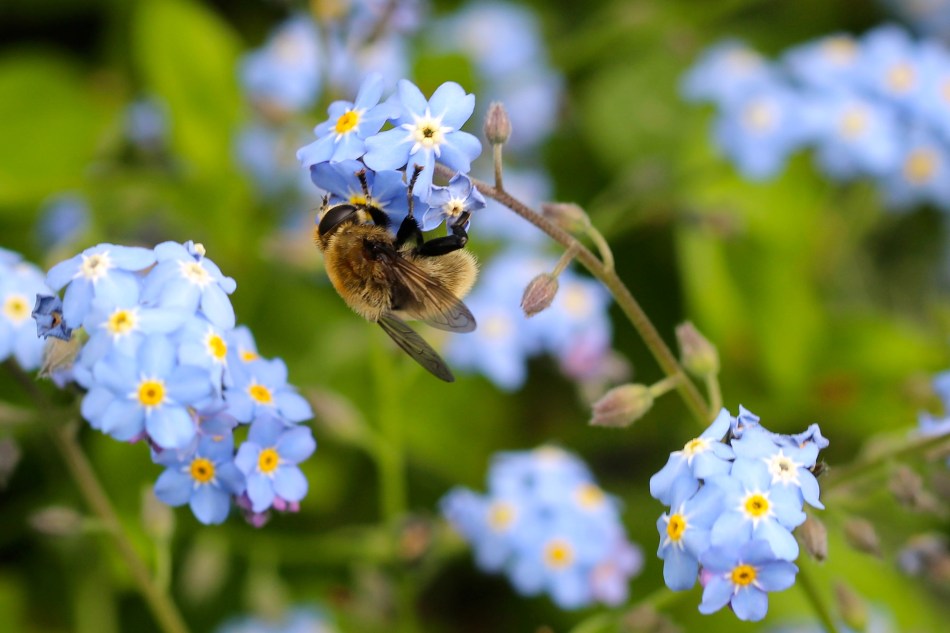 Many creatures enjoy this forget-me-not flower patch every single day!
