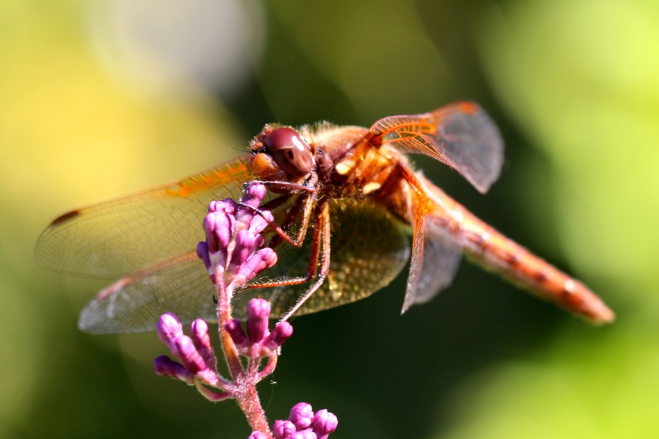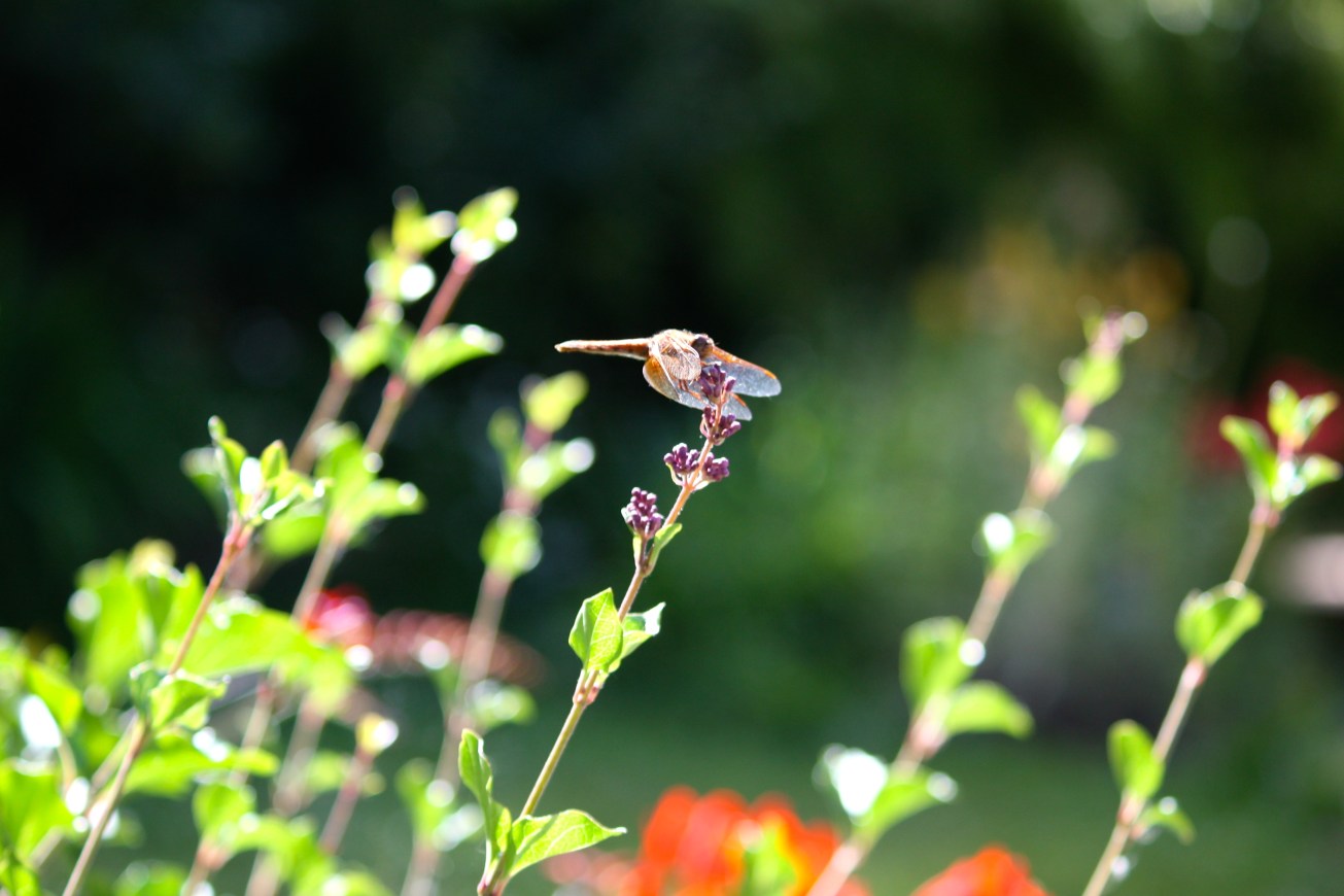We’ve lived in this house for 13 years now and I don’t remember ever seeing this many dragonflies in our yard. Despite not having a pond or water feature, I see them zooming through our yard all day long. This is the third species I recently noticed hanging around, and I was very happy it tolerated me and my camera. The dragonfly in these photos sat perched on my Korean lilac for about twenty minutes. I watched as it prey on unsuspecting insects flying by. Suddenly, it would jet through the air, make a u-turn and land in exactly the same spot where it had been perched before.