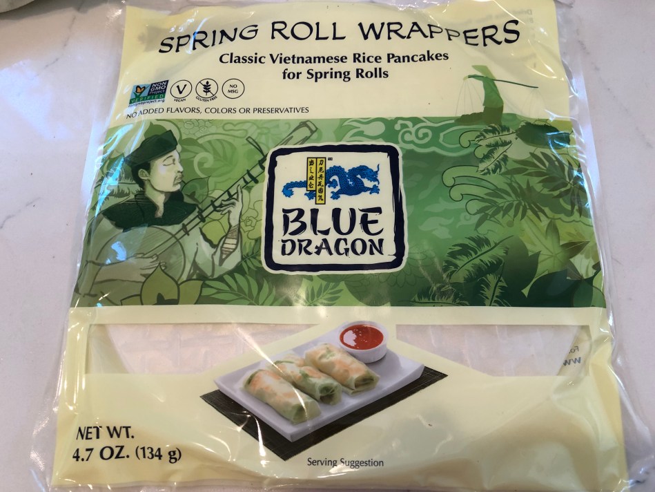 Most grocery stores carry these spring roll wrappers made out of rice flour, water and salt. They are inexpensive and most brands look pretty much the same. I do prefer products without added preservatives and other artificial ingredients.