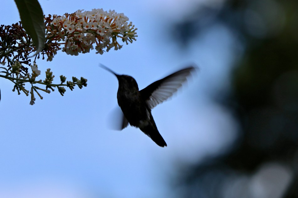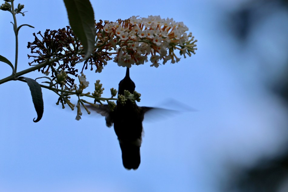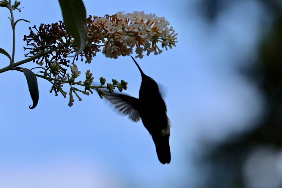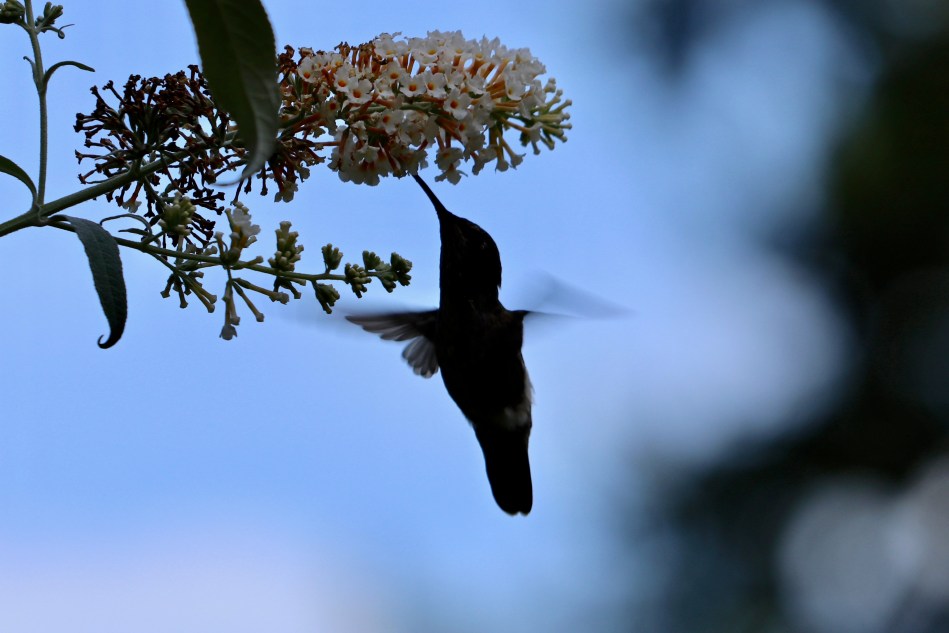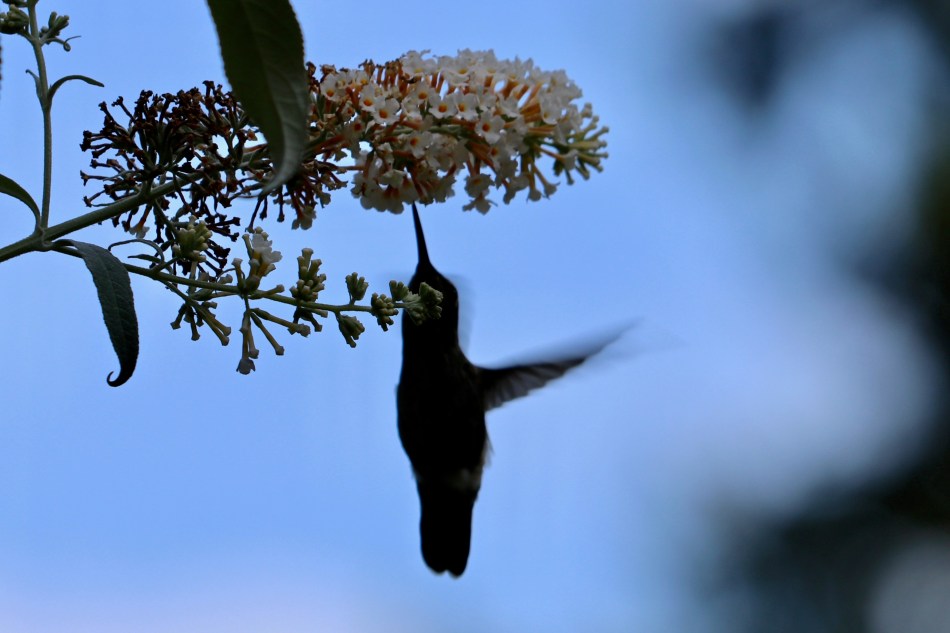 Years ago I planted a “Cotton Candy” white butterfly bush right outside our bedroom window. During the summer months we leave the windows open and many mornings I wake up to the sound of hummingbird wings whirring by. I open my eyes and am treated to the fast-moving silhouette of a hummer feasting on the nectar of these blossoms.