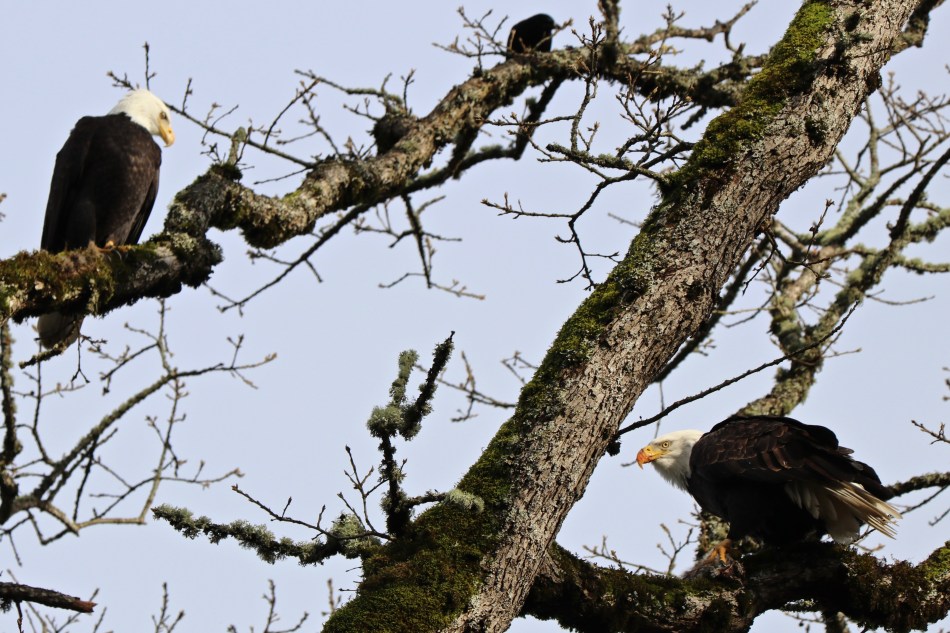 Suddenly, we spotted a pair of bald eagles way up in one of the oak trees.