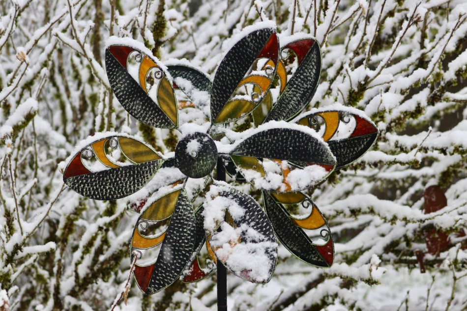 The poor birds – the hummer looked woeful and I’m sure was thinking we had this mess plus ice last year. The snow looks so lovely too – almost magical!